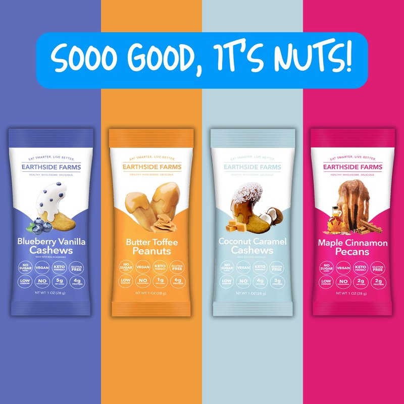 Earthside Farms Keto Nuts - Healthy Trail Mix, 8-Pack Candied Nuts Individual Packs - Candied Pecans, Toffee Peanuts, Flavored Cashews Snack Mix Variety, Healthy Snacks for Adults