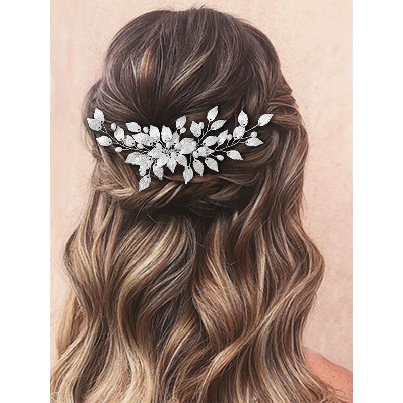 Easedaily Leaf Bride Wedding Hair Comb Silver Pearl Bridal Hair Piece Hair Accessories for Women and Girls