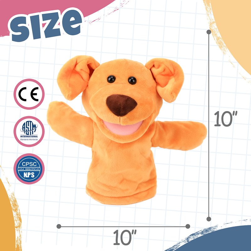 - DELICATE DESIGN: This puppy hand puppet uses advanced craftsmanship and workmanship, it is safe to touch the baby's skin, and the size of the dog hand puppet is suitable for most people's palms