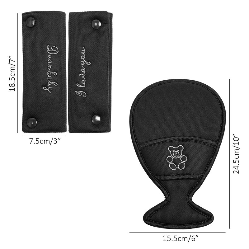It is a lovely universal comfort pad set for most of toddler seat, . Pram or stroller in the market. Different from many other similar products, the shoulder pads are designed to be installed fast and easily. Some warm words and lovely bear pattern was embroidered to show your deep love to your little one. Flame-retardant, washable and breathable material used to make your baby more comfortable.
