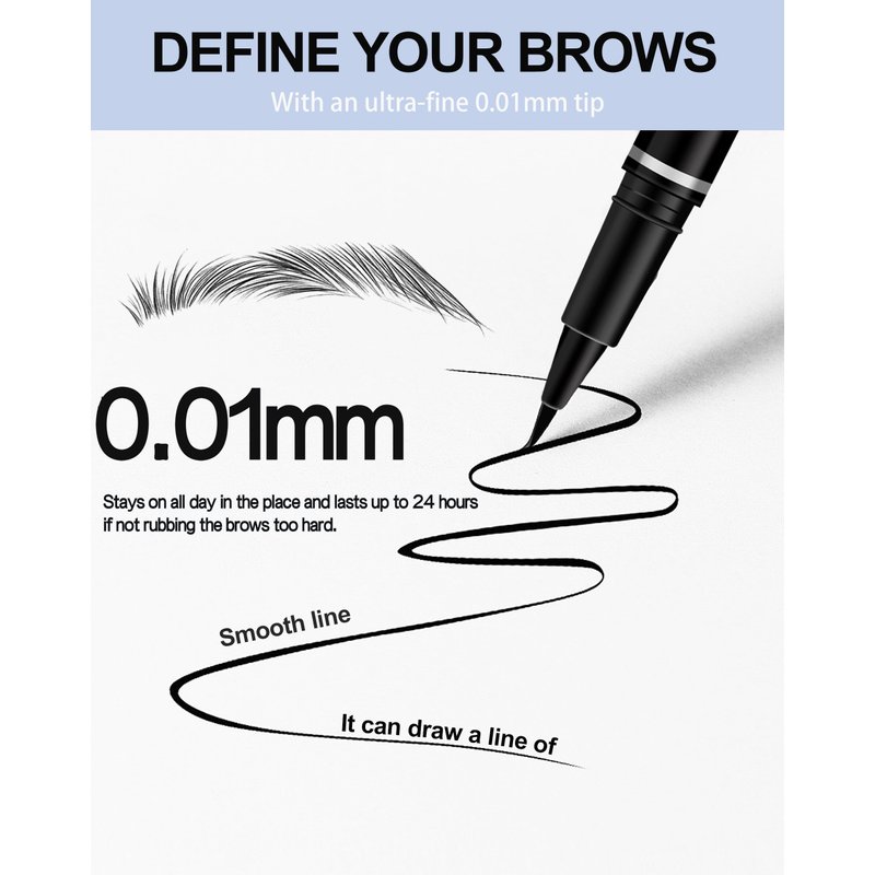 - Natural Looking Defined Eyebrow: This pen has a flexible tip, a 0.01mm ultra-fine Felt tip that lets you create thin to thick lines, customize brow width, let you create brows from scratch, fill in sparse areas, or create brows where you have already outlined recreate brows on your brows for sexy, wild brows; the pigmented, buildable shades let you go from super natural to super eye-catching with just a few clicks.