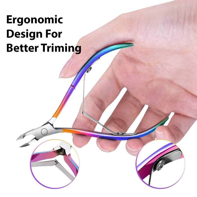 Easkep Cuticle Trimmer with Cuticle Pusher, Cuticle Remover Professional Stainless Steel Cuticle Cutter Nippers Rainbow Sharp Durable Pedicure Manicure Tools for Fingernails and Toenails