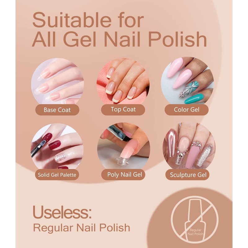 4. Please note that curing time vary based on the gel polish brand. Easkep LED nail lamp works well for all kinds of gel polishes, not for regular nail polish.