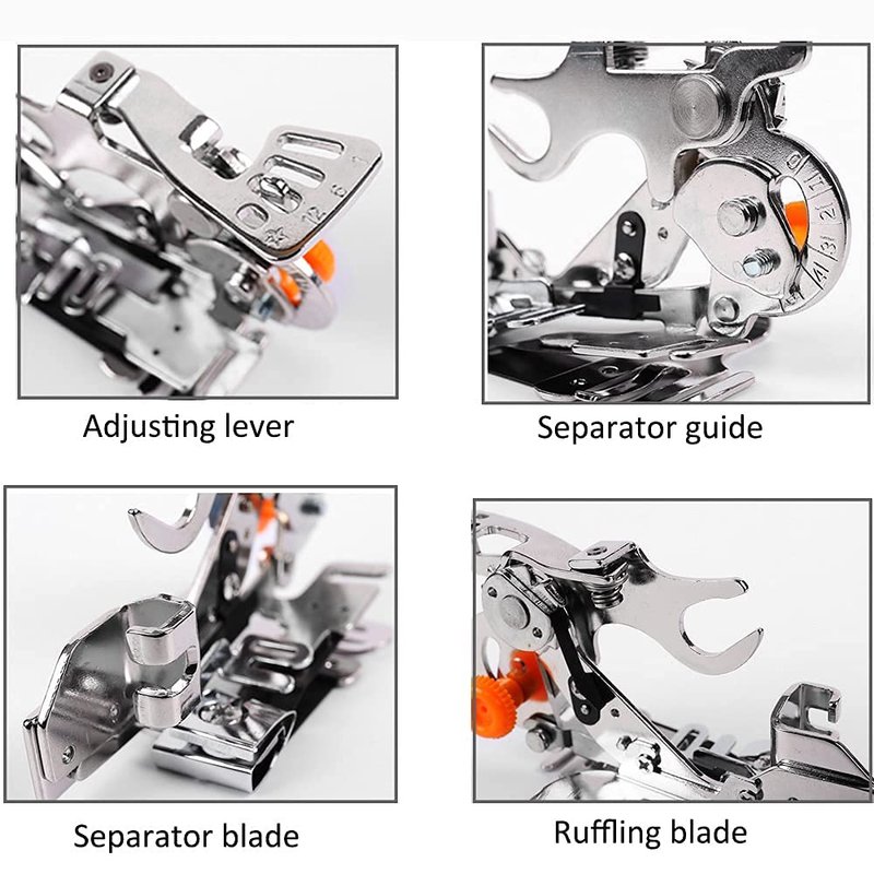 - ✔ 【Advantages】: The ruffler foot is adjustable and becomes indispensable when the amount of gathering needs to be controlled exactly, it can save much time for you.