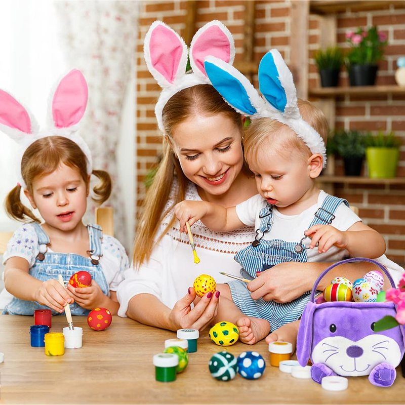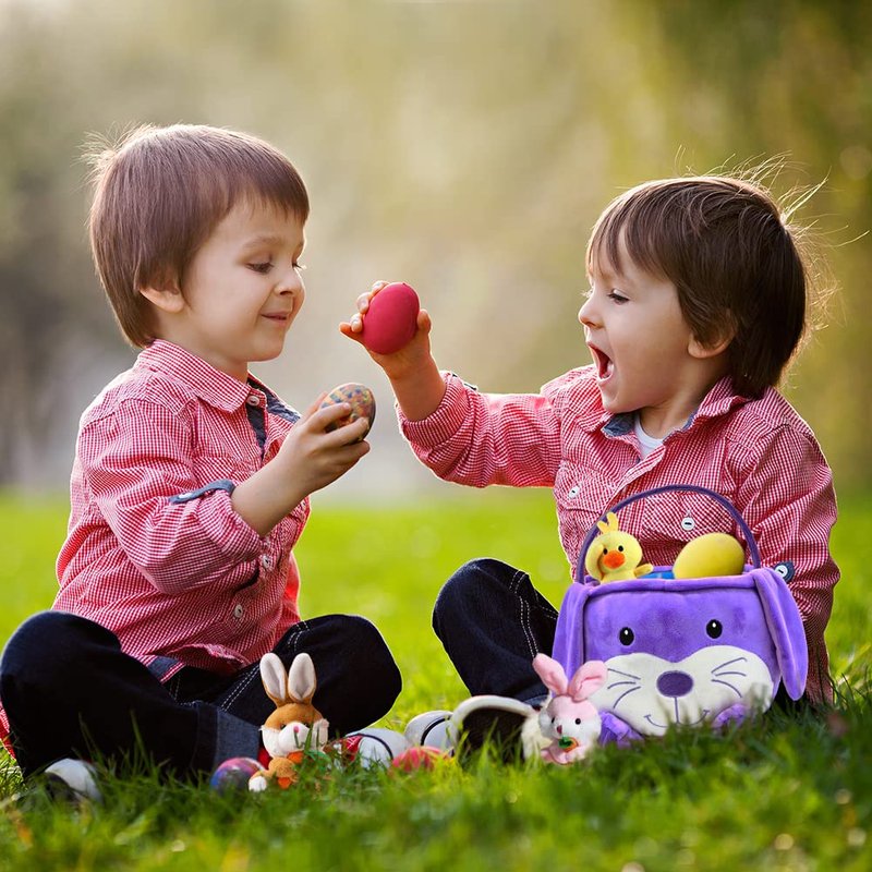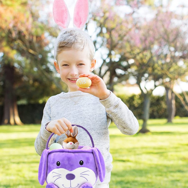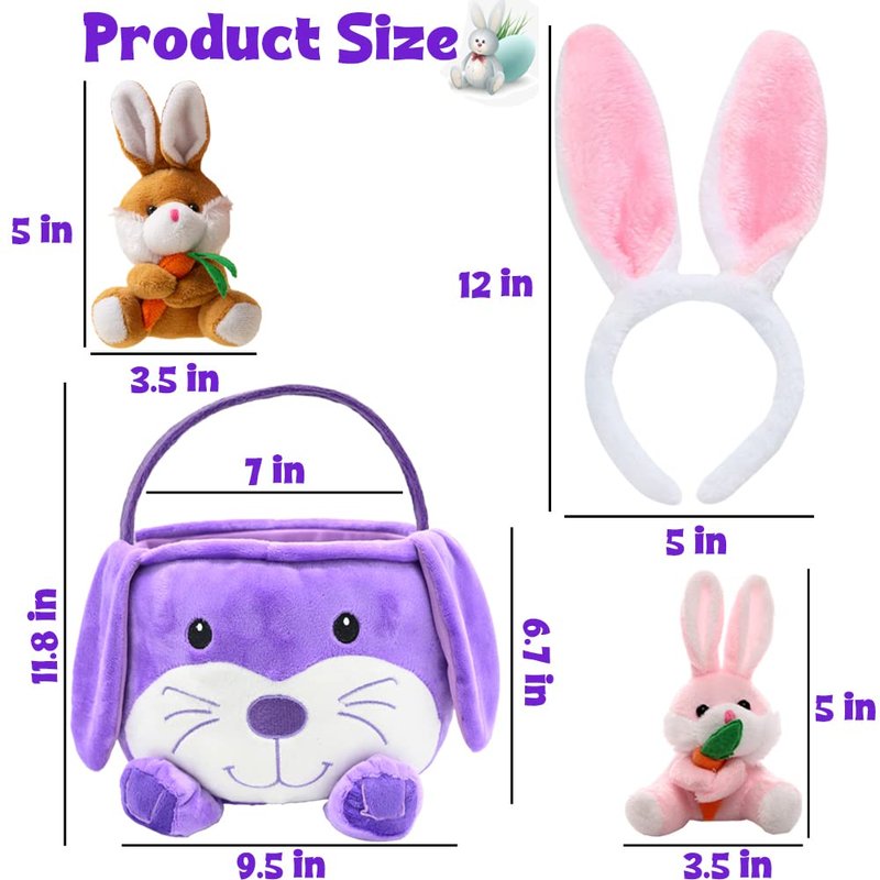 - 🐰 COMPREHENSIVE SET. Our adorable Easter Basket Set includes 1 plush bunny basket, 3 cute keychains ( yellow duck, pink rabbit and brown rabbit ) and 1 headband. With this lovely bunny basket, kids will love going for an Easter egg hunt!
