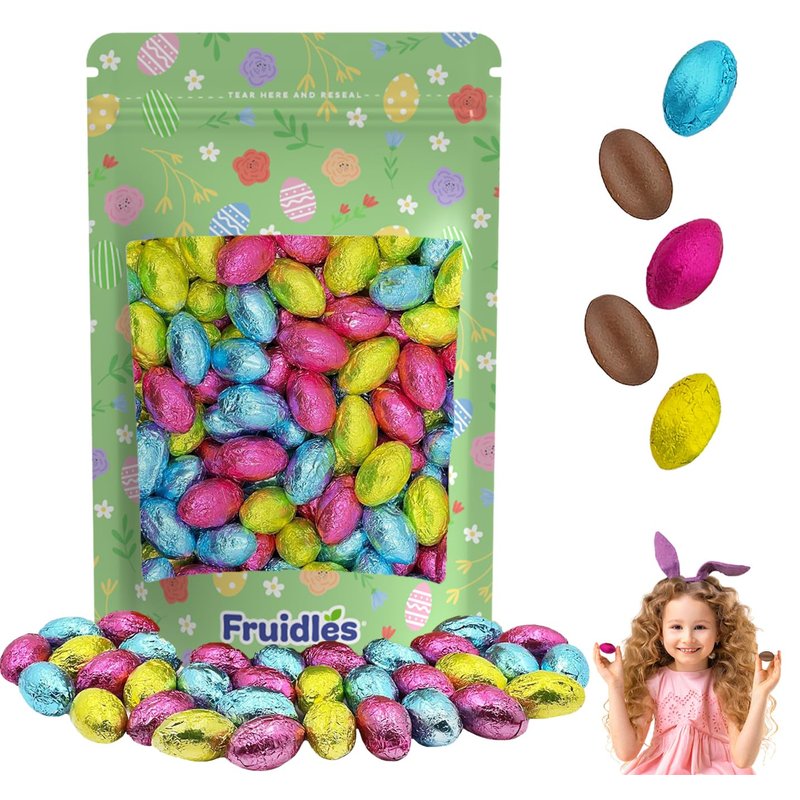 Easter Chocolate Eggs, Multicolored Foil Wrapped Milk Chocolate, Kosher Certified Dairy Enjoy these Unique Fun Chocolate Easter Eggs! Our mouthwatering long-lasting flavors make these Happy Easter Eggs a special treat for students, customers at the doctor's office or bank, and even for adults! Unwrap these Chocolate Eggs during all your special events and celebrations. A sweet and savory addition to your party supplies. Include them in your candy buffet at wedding receptions, birthday parties, office celebrations, and more. You can even hide them in goody bags and hand them out to all your partygoers as tasty party favors. Multicolor Foil-wrapped chocolate candy. Our Milk Chocolate Eggs come in 5 different sizes Bags: Half-Pound Pack, 1 Pound Pack, 2 Pounds Pack, 5 Pounds Pack, and 30 Pounds Pack (Bulk). Comes in a resealable bag to ensure quality and freshness. Don't want to wait till Easter to enjoy the most classic treat out there? These chocolates are available all year and are just as enjoyable as on Easter Day.