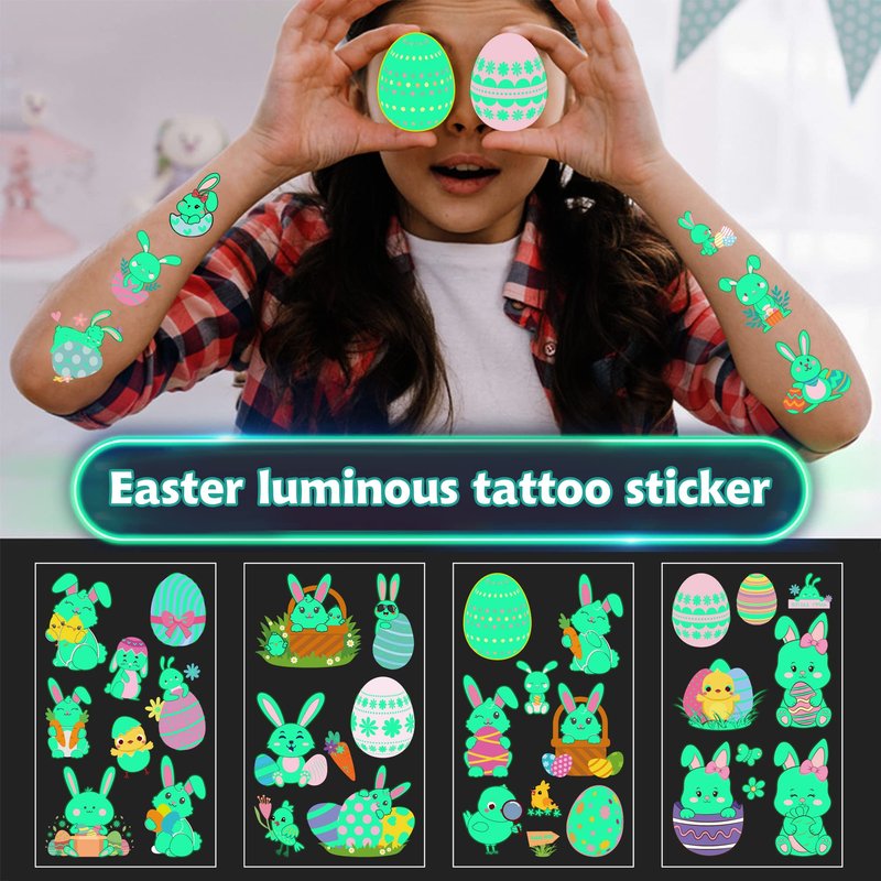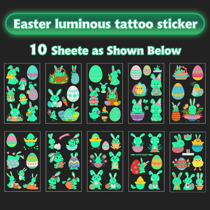 - 【Luminous Tattoos for Kids Easter Basket Stuffers/Fillers】Super cute luminous Easter temporary tattoos for kids. These cute elements of our fake tattoos include Easter eggs, basket, chick and other favorite patterns that kids like! Are you looking for a unique basket stuffers for kids without spending a lot of money? Our Easter tattoo stickers is a perfect choice!