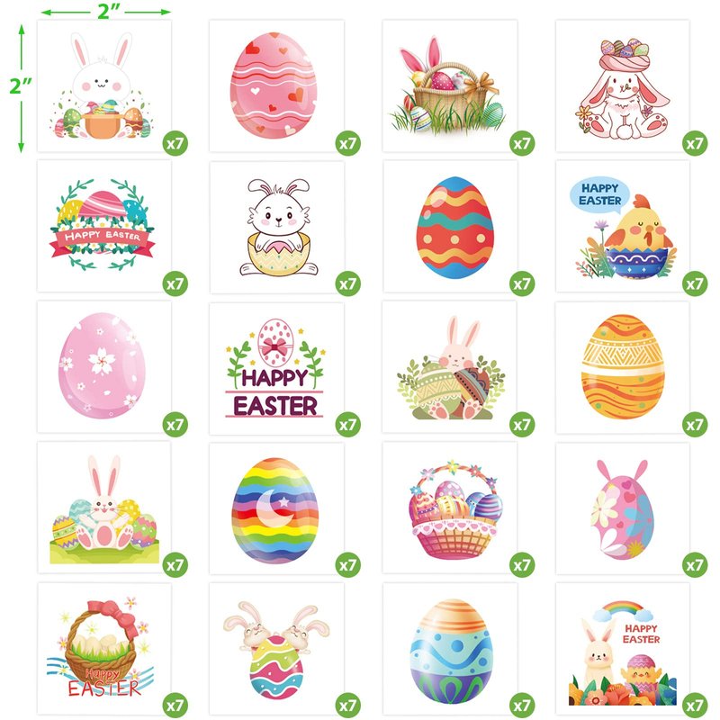 - Package Includes: 7 Easter temporary tattoo sheets, total 140 tattoos in 20 different designs. The sheets measures 7.8” X 9.8”.