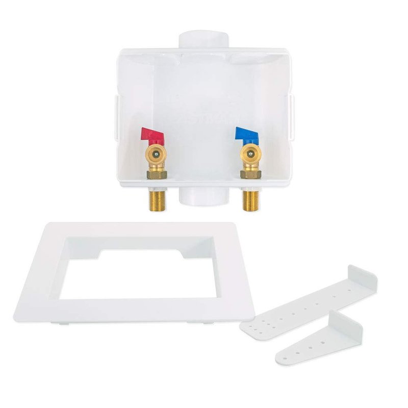 - WHAT IS INCLUDED: The washing machine line box comes complete with (1) pre-installed support bracket, (1) faceplate cover, and (1) 1/4-turn ball valve