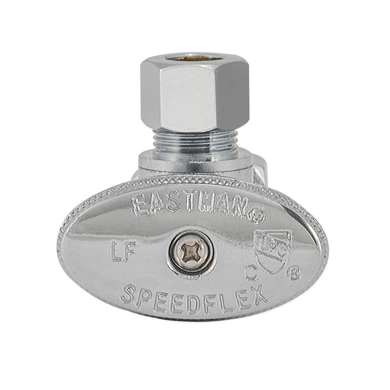 Eastman 3/8 Inch OD x 5/8 Inch OD (1/2 Inch Nom.) Quarter Turn Angle Stop Valve, Brass Plumbing Fitting, Chrome, 10738LF