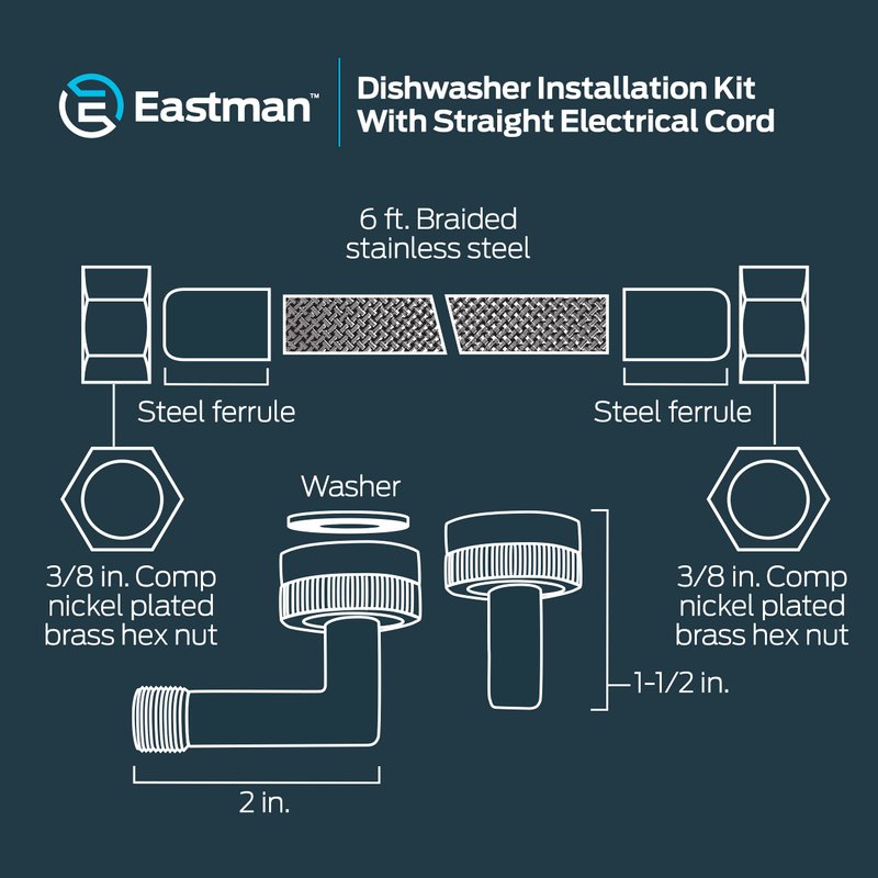 - UNIVERSAL DISHWASHER CONNECTOR KIT: The Eastman stainless steel dishwasher connector is the standard in dishwasher supply lines. This 6 ft. dishwasher water hook up supply line equipped with 3/8 in. compression connection on each end