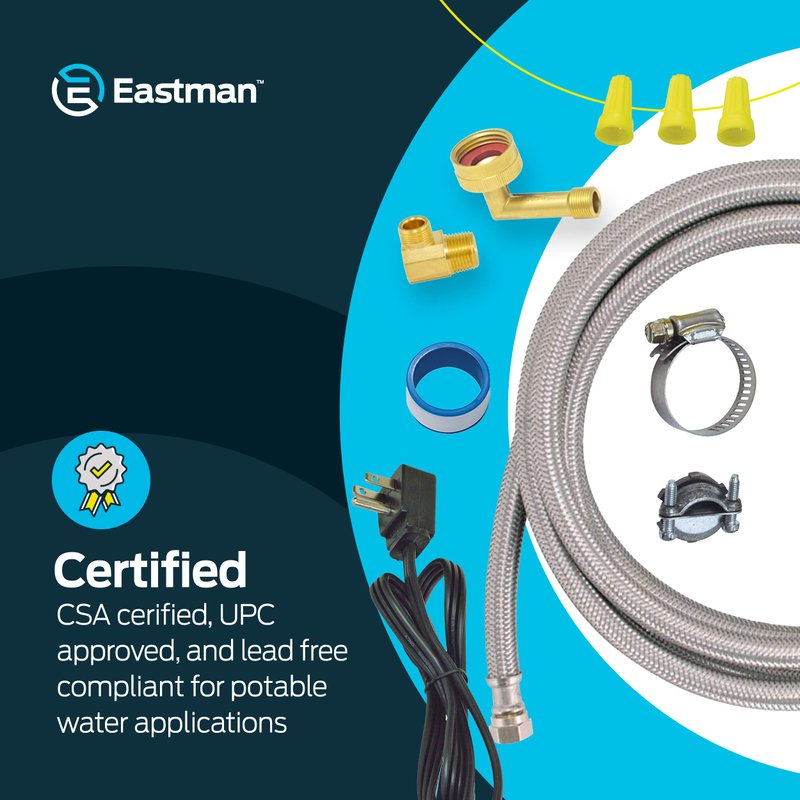 Eastman Dishwasher Installation Kit, 6 Foot Supply Line, 3/8 Inch x 3/8 Inch Compression, 6 Foot 3-Prong Straight Power Cord, Braided Stainless Steel Dishwasher Connectors, 41150