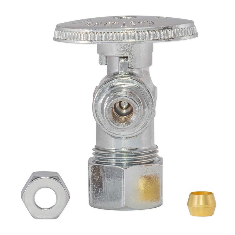 - MEASUREMENT: The 1/4 turn stop valve is equipped with a 5/8 inch OD compression inlet x 1/4 inch OD compression outlet x 3/8 inch OD compression outlet