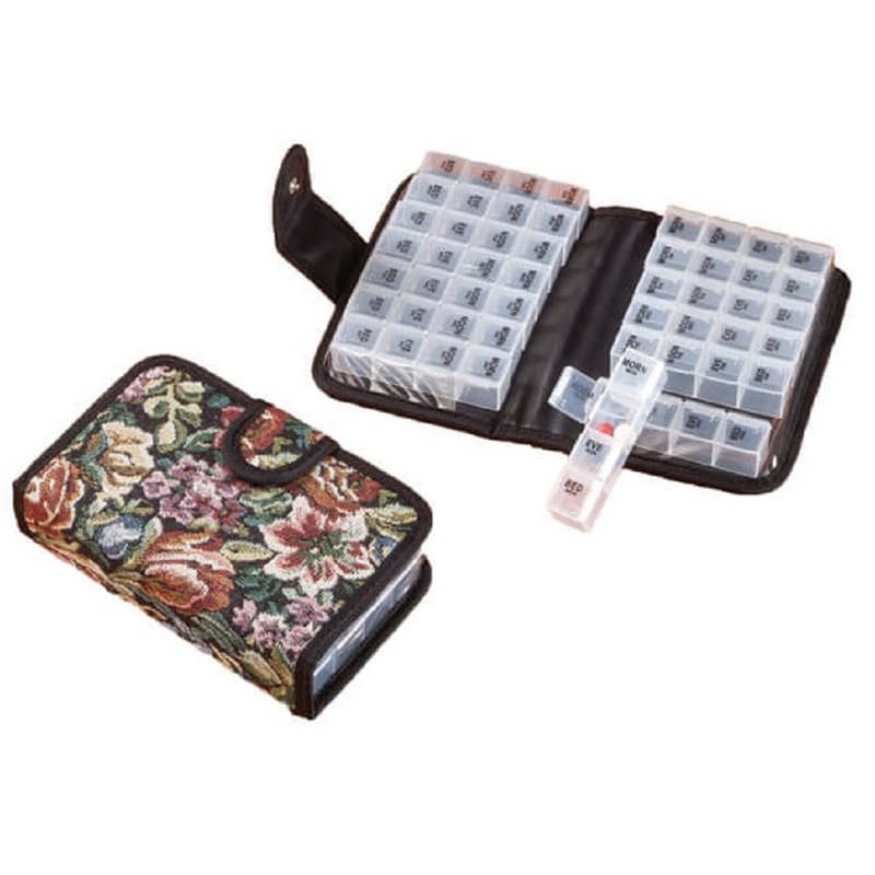 Easy Comforts 14 Day Pill Holder, Travel Case Medication Reminder Pill Box with Detachable Compartments, Tapestry