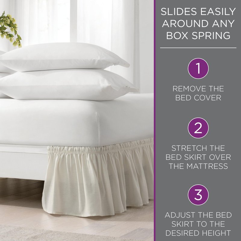 - ELEGANT BED SKIRT - Transform your bed with our EasyFit Solid Elastic Wrap Around Bed Skirt. No need to lift your mattress, just slip this dust ruffle bed skirt effortlessly over your mattress and add the perfect touch of charm to your bed