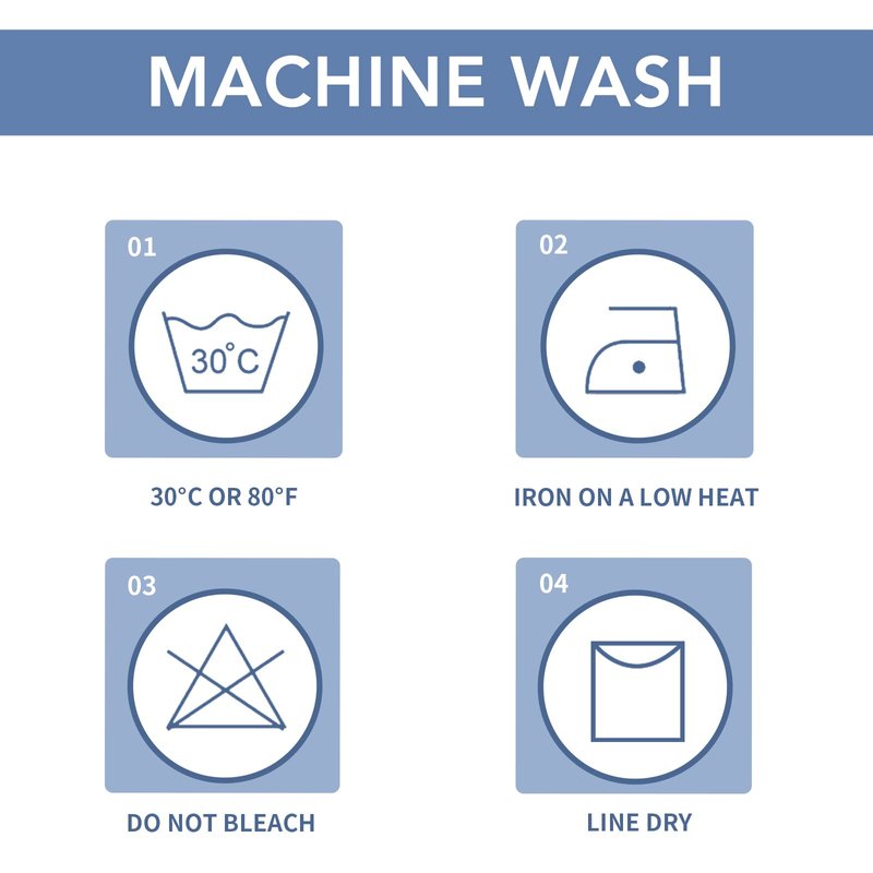 1.Machine washable. Wash separately at gentle cycle. Using mild laundry detergent. Tumble dry with low heat. Do not bleach.