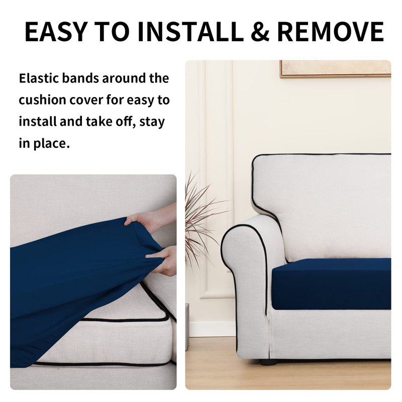 Easy-Going 100% Waterproof Chair Sofa Seat Cushion Slipcovers Couch Cushion Cover Stretch Furniture Protector for Kids, Pets (2-Piece Loveseat Cushion, Navy)