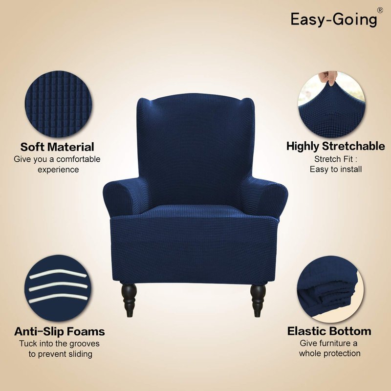 Easy-Going Stretch Wingback Chair Sofa Slipcover 1-Piece Sofa Cover Furniture Protector Couch Soft with Elastic Bottom Polyester Spandex Jacquard Fabric Small Checks(Wing Chair,Navy)