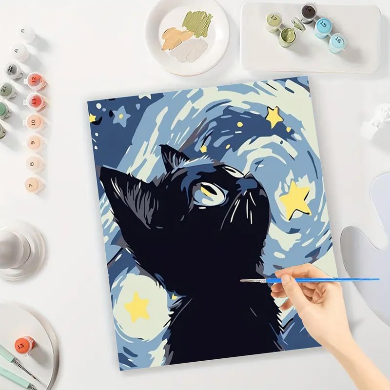 Easy Paint by Numbers Kit for Adults Beginner, Astral Adult Paint by Number Kits on Canvas, DIY Cat Painting with Numbers for Adults, Acrylic Oil Paint by Number Kits for Home Wall Decor 16x16 In