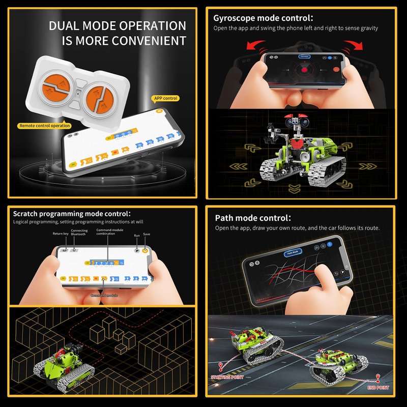- Dual Control Modes: Robotics for Kids is Easily switch between remote control and mobile app control, offering diverse ways to play and engage with the toy set, bringing technology and play together!