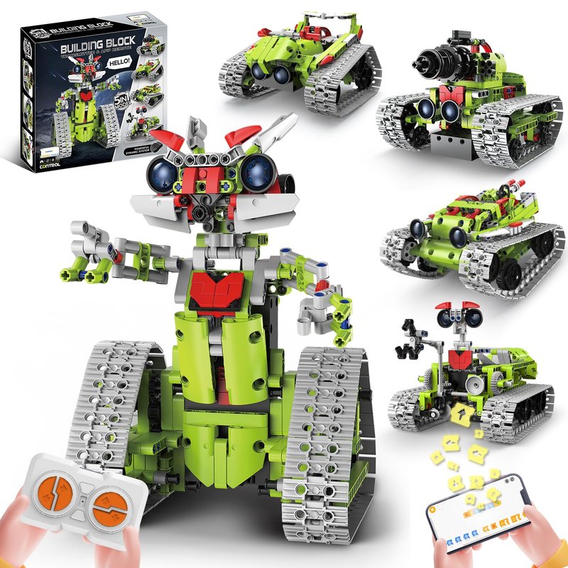 - Unleash your child's creativity with our remote-controlled DIY toy kit! This eco-friendly set can be crafted into robots, tanks, and cars, offering endless play possibilities. Dual control via remote or app provides versatility and excitement. With rechargeable batteries, parents can enjoy less hassle and kids aged 5-13 can have uninterrupted fun! A perfect blend of innovation and education, sure to be the highlight of playtime for your little one!