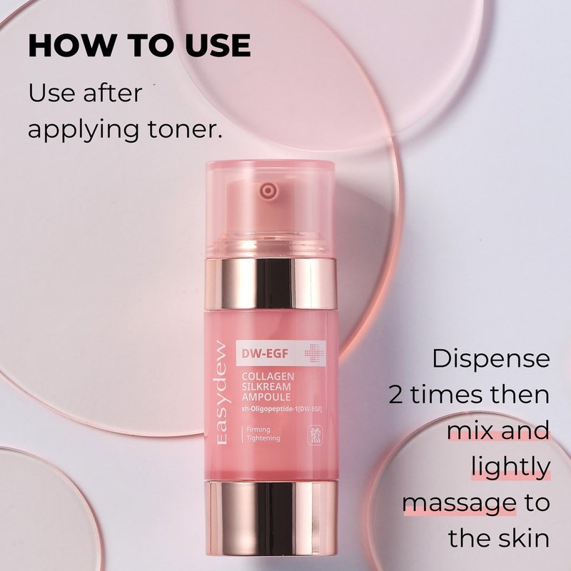 - THE EASYDEW PROMISE: As a leader in derma-cosmeceutical solutions, EASYDEW provides products that combine scientific innovation with skin-friendly formulations. Regular use of our DW-EGF Collagen Silkream Ampoule leads to visibly more lifted and firmer skin, embodying our dedication to high-quality, effective skincare.