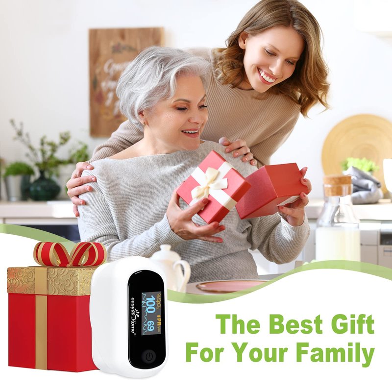 Easy@Home Fingertip Pulse Oximeter SpO2 Blood Oxygen Saturation Meter and Heart Rate Monitor, Rotatable OLED Display with Batteries Included, Portable Lanyard and Carrying Package-EHP035