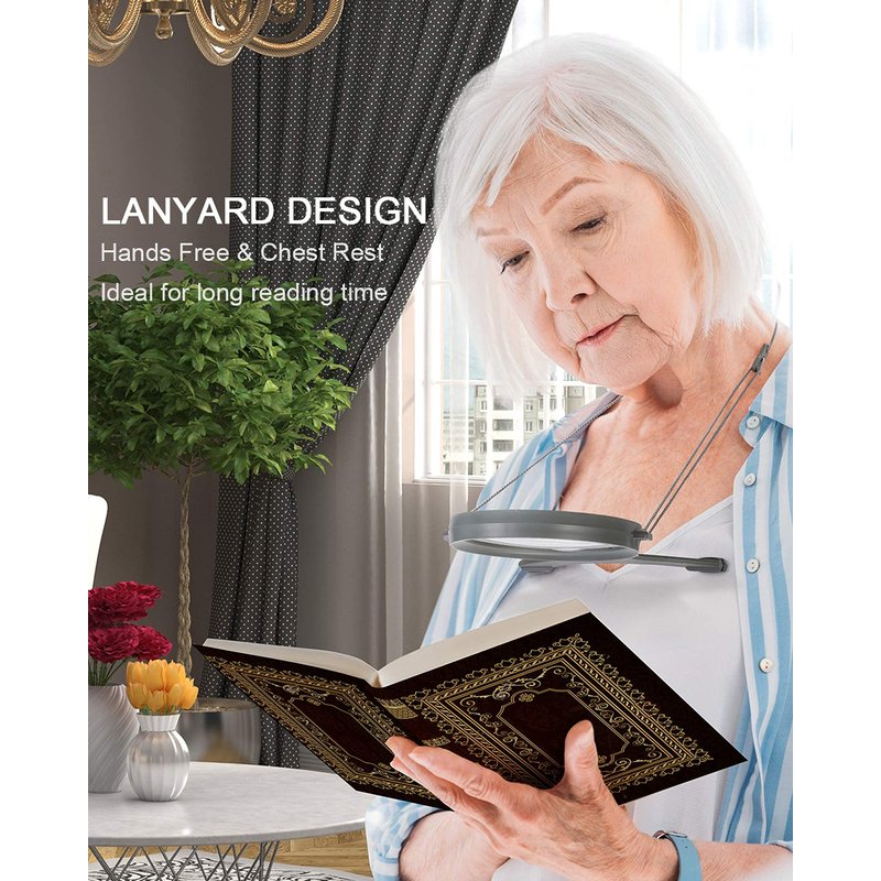 - ★ Hands-Free LED Magnifier: With a neck lanyard, chest support brace with soft-padded feet, bi-focal spot lens, lightbox, you can hang it on the neck with the magnifier before the chest for hands-free reading. Ideal for long reading time or embroidery