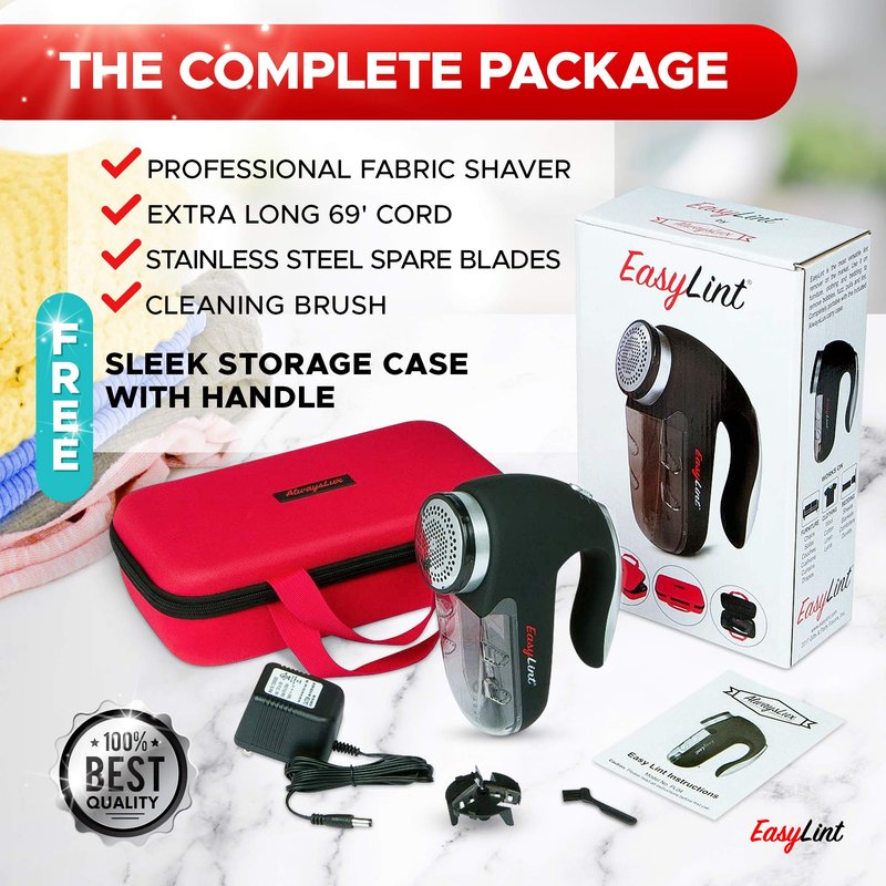 - ALWAYSLUX STORAGE CASE: Our EasyLint sweater shaver comes with a sleek AlwaysLux zipper carry case! The carry case is tough made and perfect for storage season after season. EasyLint is the ONLY fabric shaver fuzz remover on the market to come with a case!