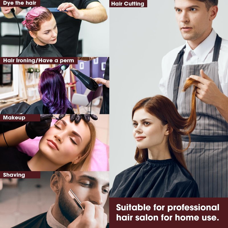 Easy to Use and Maintain: The cape is lightweight and easy to drape over clients' shoulders, ensuring hassle-free haircut sessions. It can be quickly secured in place with the adjustable closure. Additionally, it is easy to clean and dries quickly, making it ideal for busy professionals.