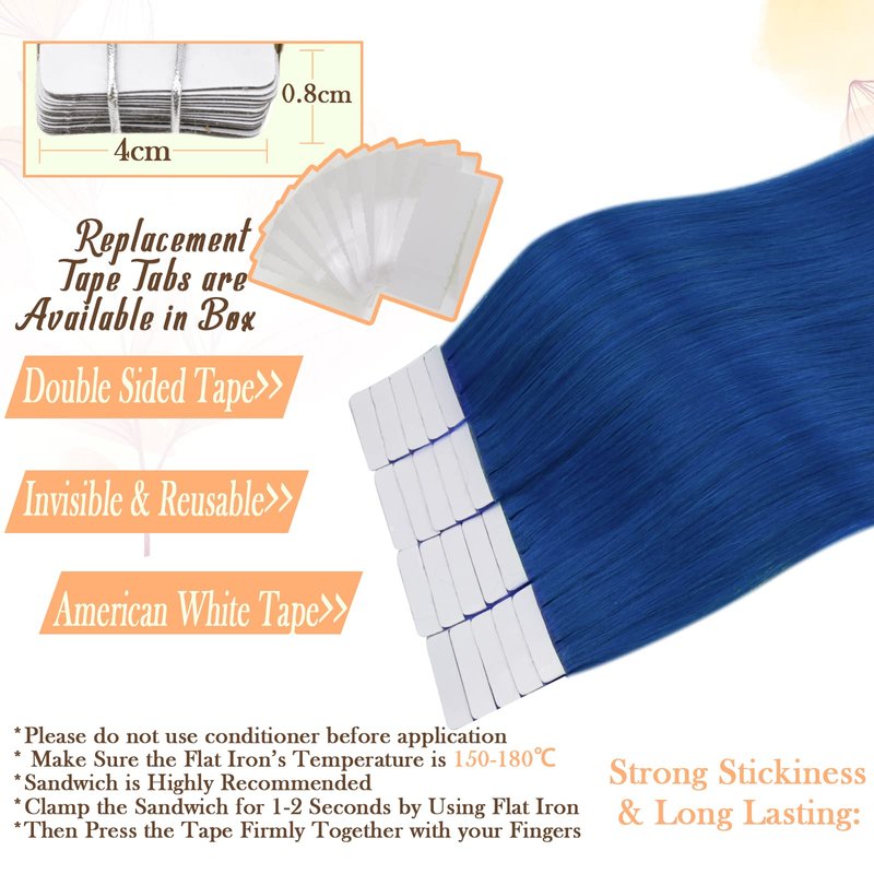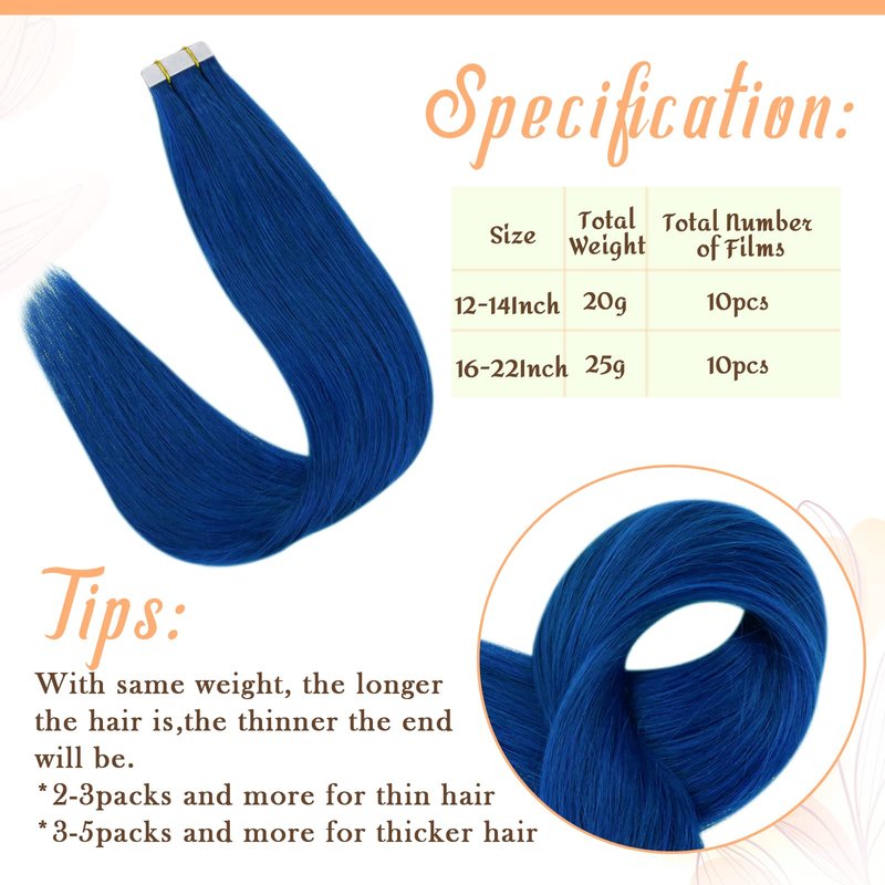 Easyouth 16inch Blue Hair Extensions Tape in Human Hair Invisible Tape in Extensions Human Hair Colored Tape in Hair Extensions Blue Hairstyle 25g 10pcs