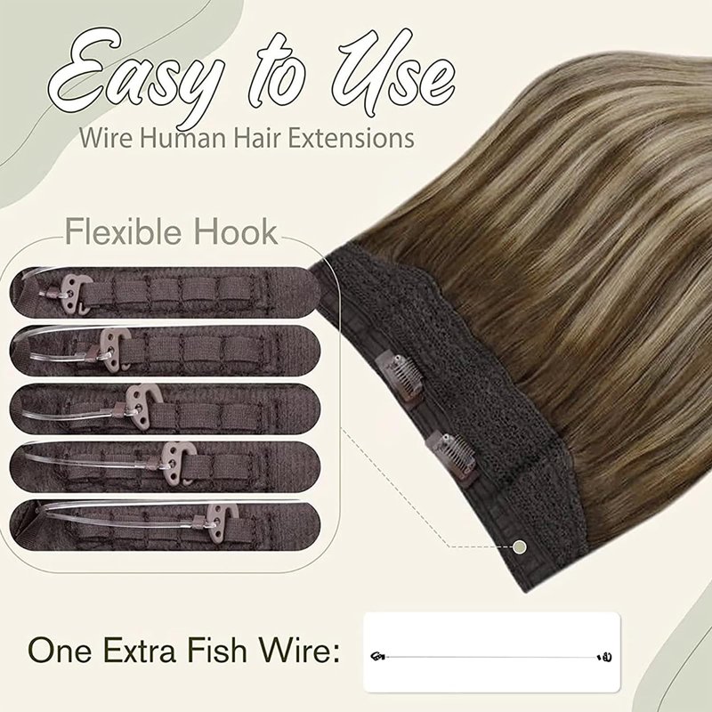 - 【Innovative Products】 - These wire hair extensions are the most innovative products on the market. Unlike traditional hair extensions, they don't require tape or glue. The transparent wire allows the extensions to blend perfectly with your hair color. The wire pieces will sit comfortably around your head and will not move when you shake your head. Try these innovative extensions for a natural and effortless look.