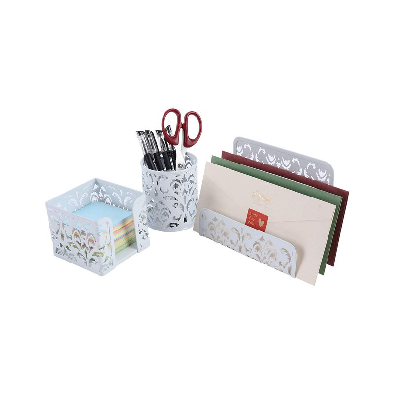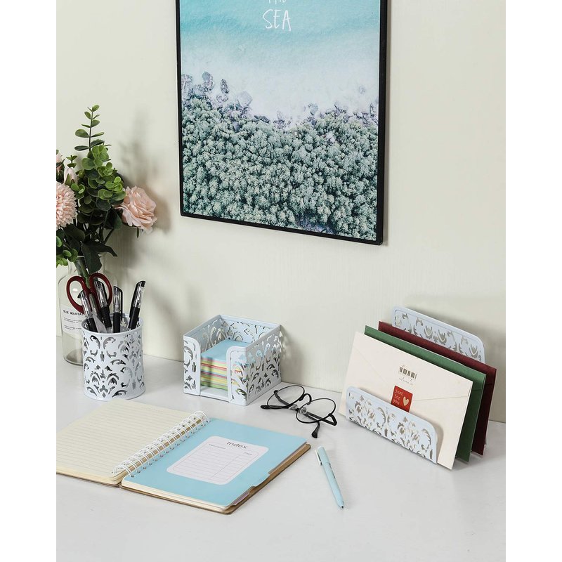 - Desk Accessories Set of 3 Pieces: Office supplies for women, this desk organizer set is a 3 piece set that provides the perfect inbox organizer caddy for your desk at home or in a working environment. This stationery set includes a pen cup, mail sorter and sticky note holder