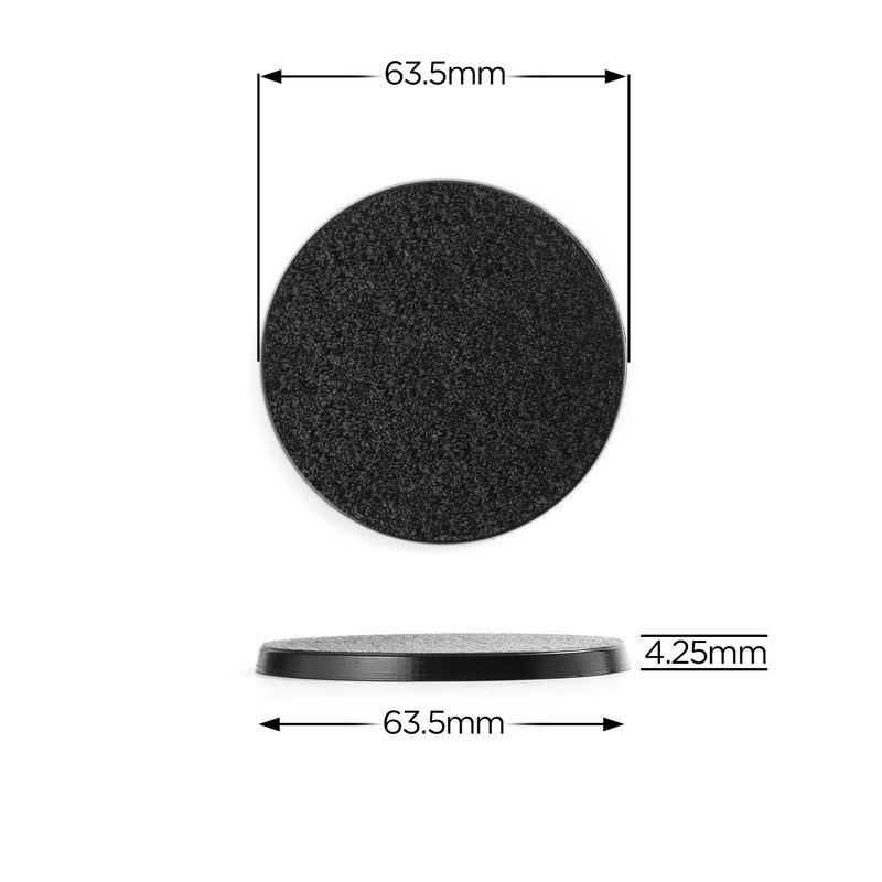 - Each base measures 63.5 mm (2.5in.) in diameter, 4mm (0.158in.) in height and 3mm (0.1118in.) in depth.