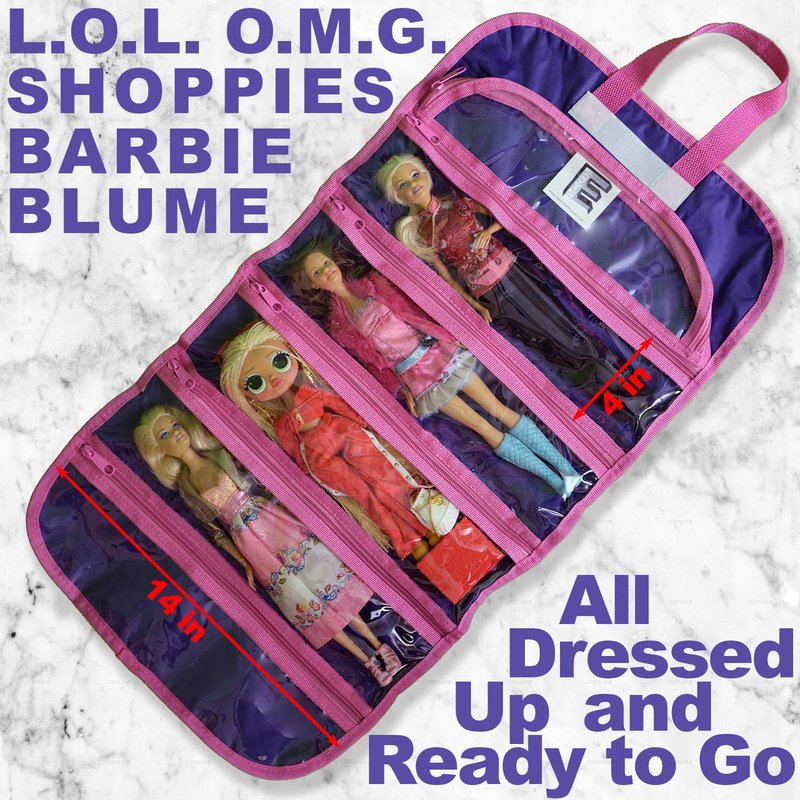 - Holds up to 6 different dolls in clear zippered pockets to display protect and store