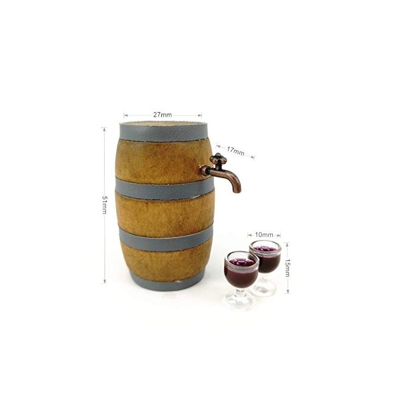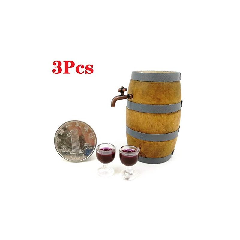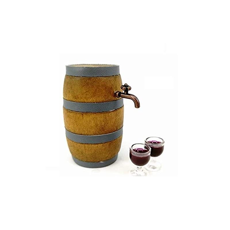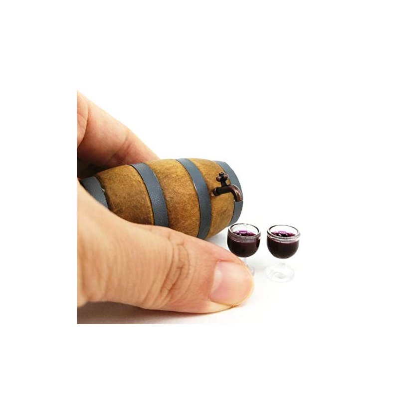 EatingBiting 1:12 Doll Mini House Christmas House Miniature Furniture Beer Barrel Cask Beer Keg Beer Mug 3Pcs Set (1 Beer Barrel & 2 Cup) Photography Props House Ornaments