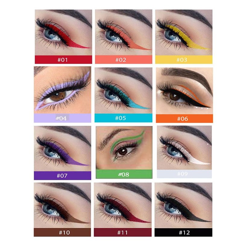 - ❤【12 Colors Colorful Eyeliner Set】12 different colors eyeliner set can be quickly colored. A variety of liquid eyeliner pen can meet your different makeup needs. You could create colorfully vibrant and fun looks from day to night.