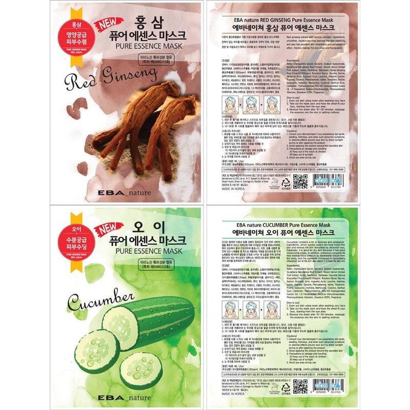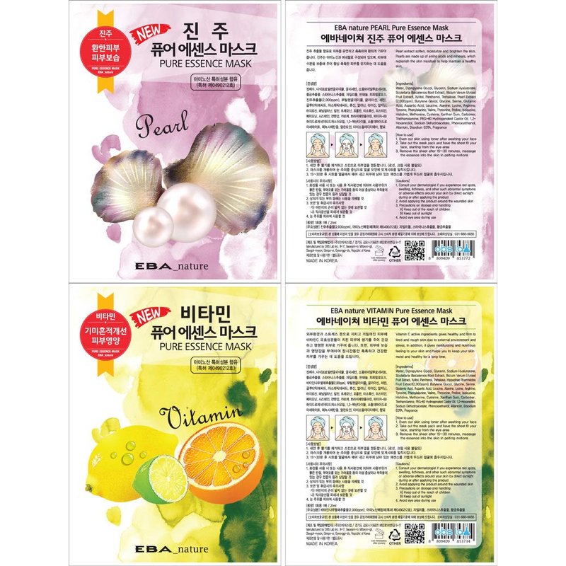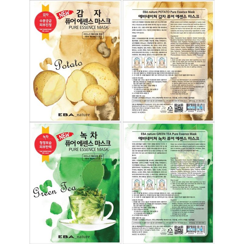 Eba nature 11 pcs Pure Essence Facial Mask Sheet of (11 Types x 1 pcs), Korean Face Mask Sheets for Skincare, Cleansing, Moisturizing, Elasticity