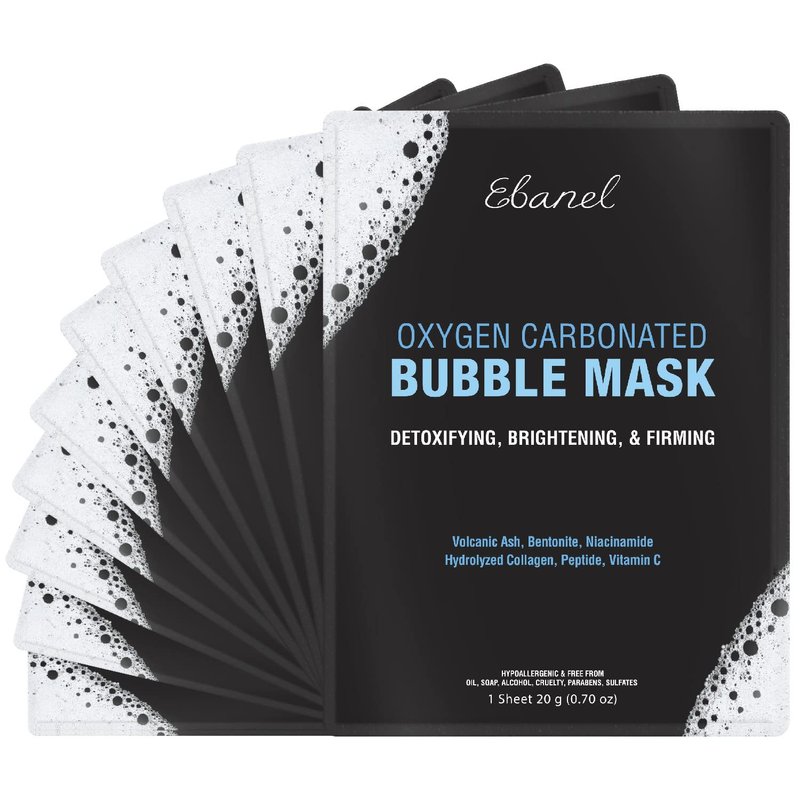 Ebanel 10 Pack Carbonated Bubble Clay Mask deeply cleanses and detoxifies pores and impurities, minimizes pore sizes, treat acne, and reduces redness. Instant brightening and hydrating for a brighter, smoother, healthier complexion. Covered with slowly generated and released oxygen gas to have a cool, fun experience and promote skin cell regeneration. Formulated in Korea and made in USA.