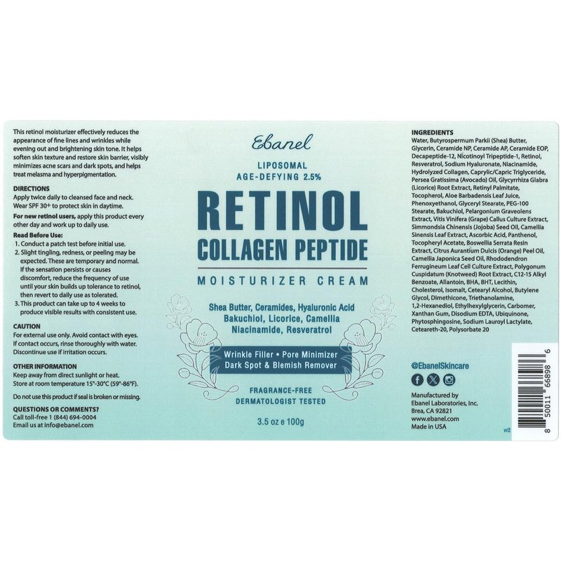 Ebanel 2.5% Retinol Face Moisturizer Cream with Collagen Peptides, Vitamin C, Hyaluronic Acid, Niacinamide, Anti Aging Wrinkle Night Cream, Brightening Neck Firming Cream for Face
