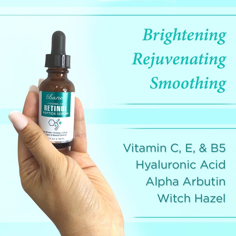 Ebanel retinol serum 2.5% with hyaluronic acid serum is the ultimate anti aging serum that helps slow down the natural aging process and resurface the skin. This retinol collagen serum works at a cellular level to enhance collagen production, stimulate cellular renewal, and reduce and prevent the appearance of aging. Our retinol peptides serum for face infused with peptide complex helps firm and lift the skin and repair aged or damaged skin cells. This retinol anti wrinkle serum helps even and brighten dull skin by exfoliating at a cellar level. Our retinol acne serum has an exfoliating effect that stops pores from clogging, prevents pimples, blackheads, and cysts from forming, regulates oily skin, and minimizes breakouts. This retinol face serum also helps balance oil level, moisturize skin, decrease redness, and increase skin elasticity. Also can be used as dark spot corrector for face, retinol wrinkle eye serum