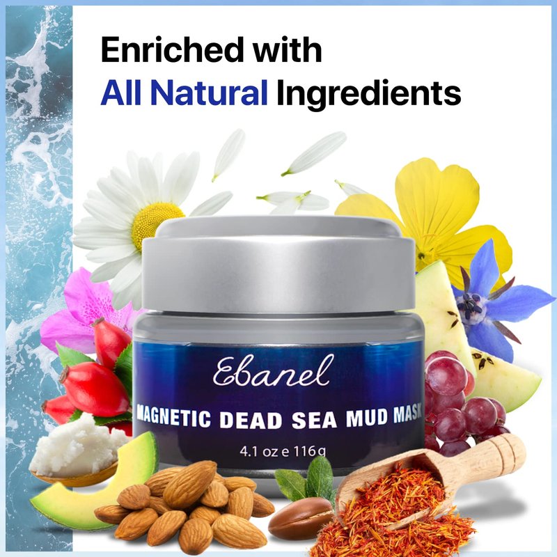 Ebanel Magnetic Dead Sea Mud Mask for Face and Body, 4.1 Oz Deep Pore Cleansing Moisturizing Bentonite Clay Detox Face Mask for Blackheads with Retinol, Rosehip, Avocado Oil, Argan Oil, Peptide