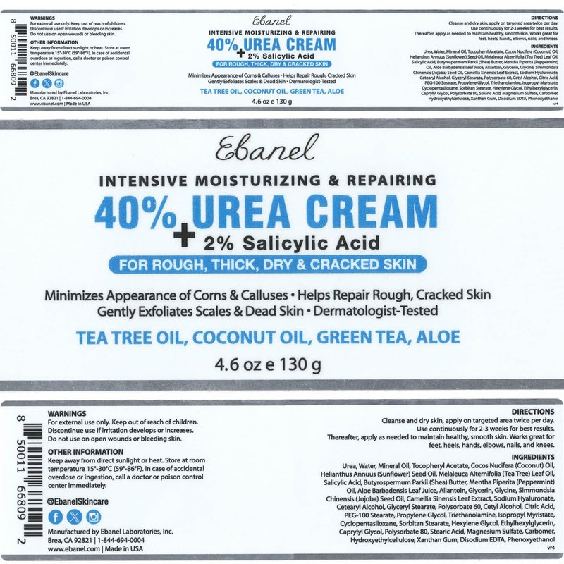 Ebanel Urea Cream 40% plus Salicylic Acid 2%, Foot Cream for Dry Cracked Heels Feet Knees Elbows Hands, Foot Dead Skin Cuticle Callus Remover Toenail Softener, Skin Barrier Repair Cream, 3-Pack