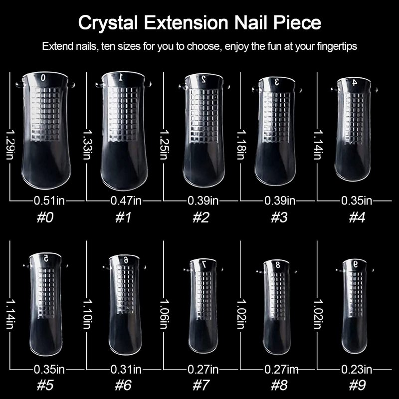 EBANKU nail extension kit includes: - Nail Mold: 10 different sizes/100 pcs /box