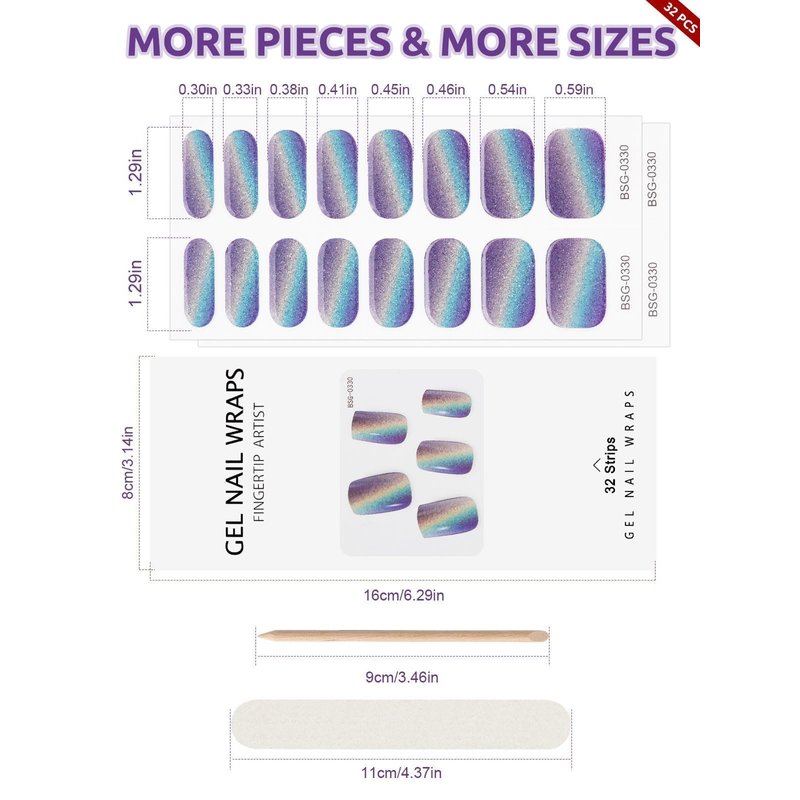 - UV Gel Nail Art Strips: EBANKU cured gel nail wraps, cured with UV/LED lamp to get a real nails beauty without nail salon. Package includes 32pcs gel nail strips stickers with 1pc nail file, 1pc nail stick put into a paper box.