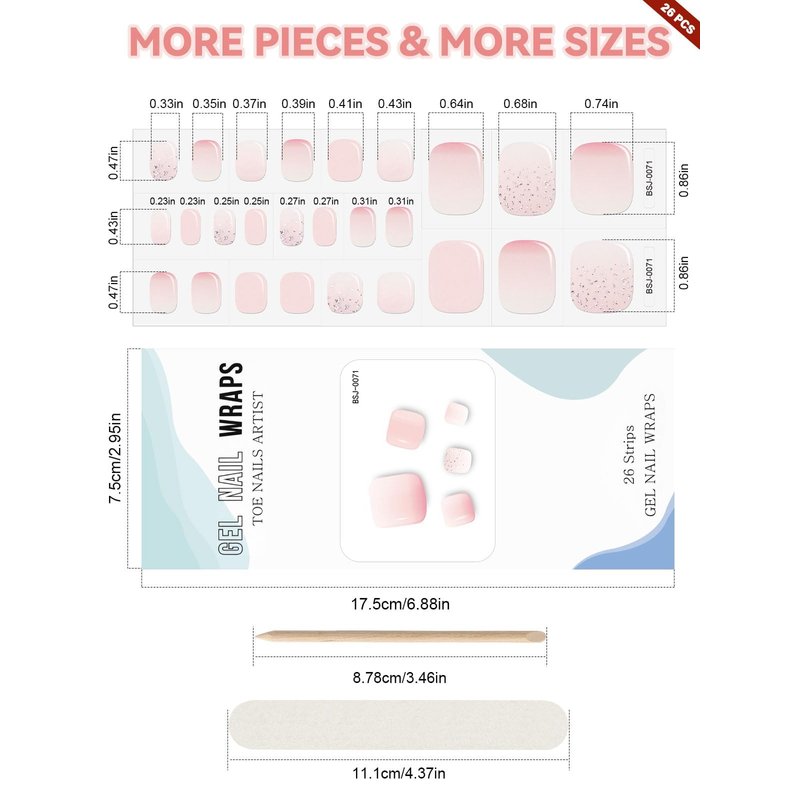 - π UV Gel Toe Nail Art Strips: EBANKU cured gel toe nail wraps, cured with UV/LED lamp to get a real nails beauty without nail salon. Package includes 26pcs gel nail strips stickers with 1pc nail file, 1pc nail stick put into a paper box.
