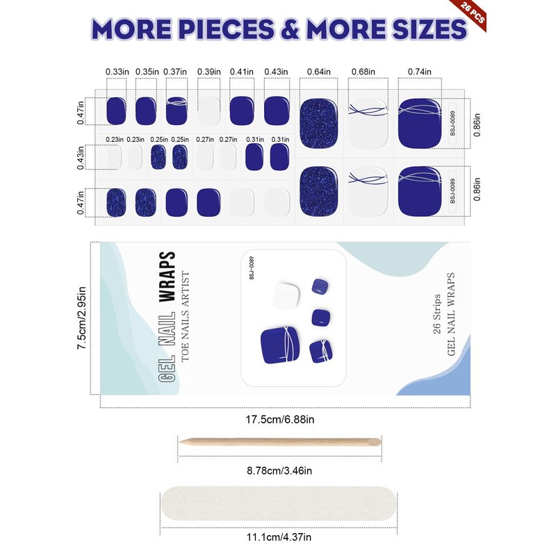 - π UV Gel Toe Nail Art Strips: EBANKU cured gel toe nail wraps, cured with UV/LED lamp to get a real nails beauty without nail salon. Package includes 26pcs gel nail strips stickers with 1pc nail file, 1pc nail stick put into a paper box.