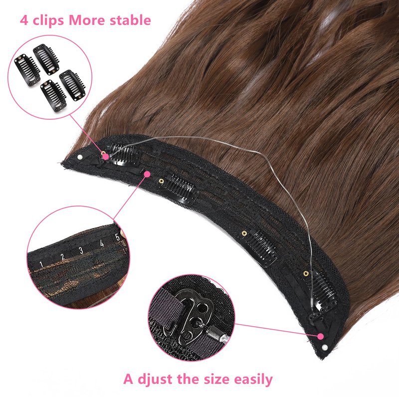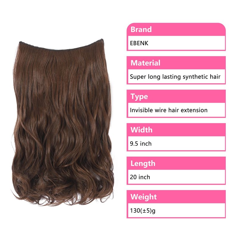 EBENK 4PCS Clip In Hair Extensions 20 Inch - Long Wavy Secret Hairpiece with Adjustable Transparent Wire, Secure Clips, Hair Pieces for Women M10B-12(Chocolate Brown)