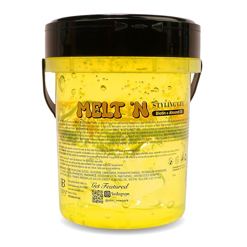 EBIN NEW YORK Melt'n Styling Gel Biotin and Almond Oil Infused 16oz - Strengthens Hair and Moisture Retenetion, Strong Hold Styling, Protects Hair from Damage, Gives High Shine, No Frizz or Breakage