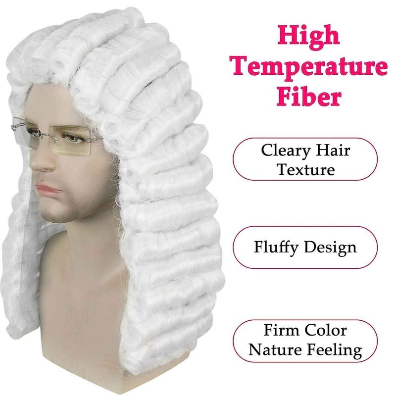 - ♥♥Material: The white judge wig is made of high quality heat resistant synthetic fiber, headband is made from stretch fabric, the white judge hair is soft and smooth; easy wash and dry for reuse.